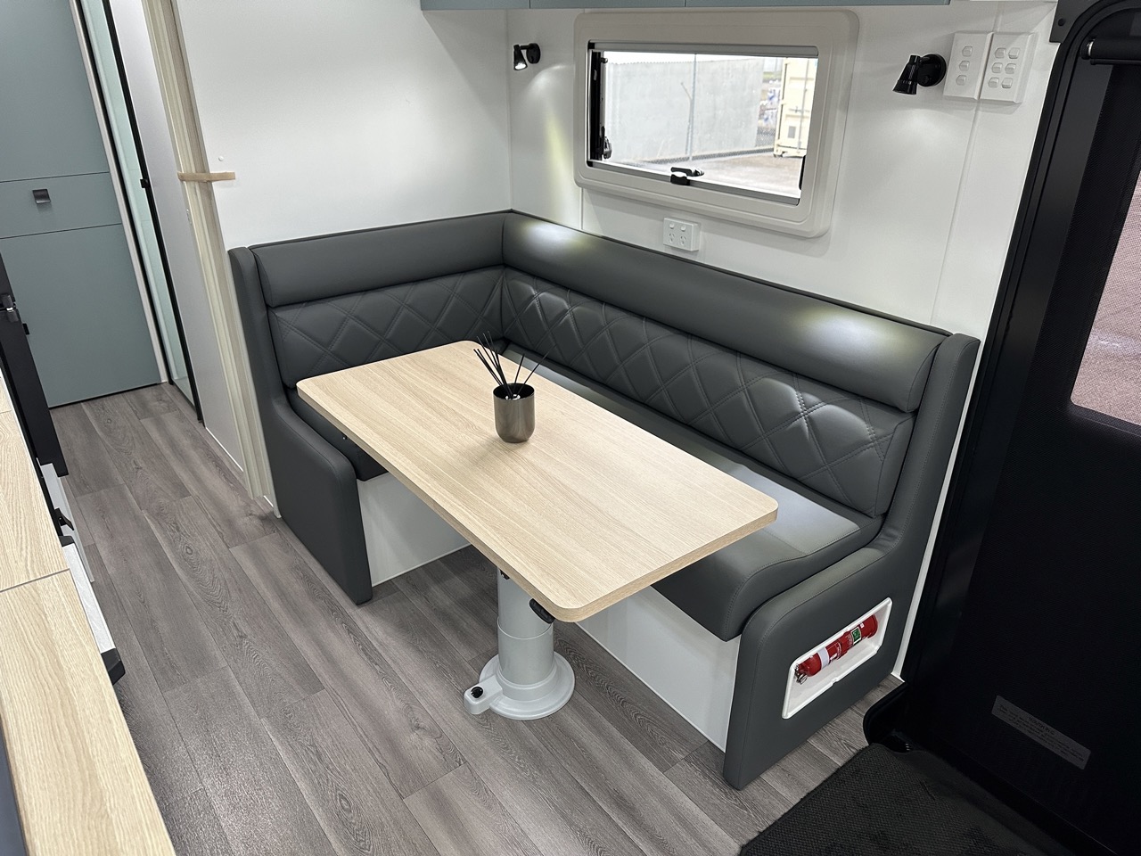 L-Shaped Dinette with Tic Cushion & Telescopic Adjustable Table that Turns into Bed