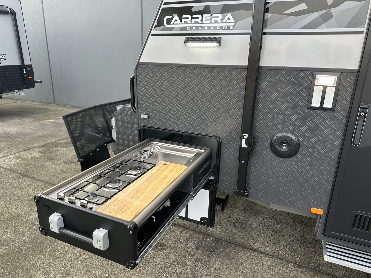 Dometic Slide-out Kitchen with 3 Gas Burners, Sink & Chopping Board