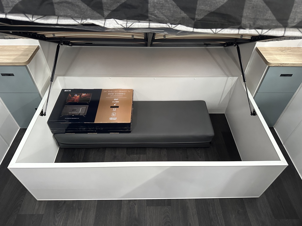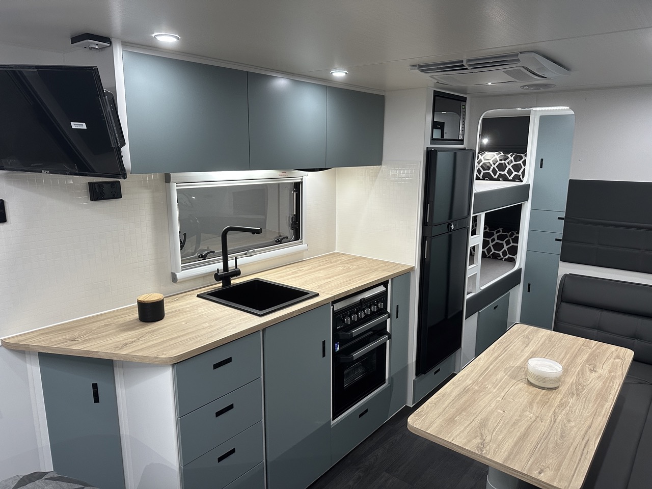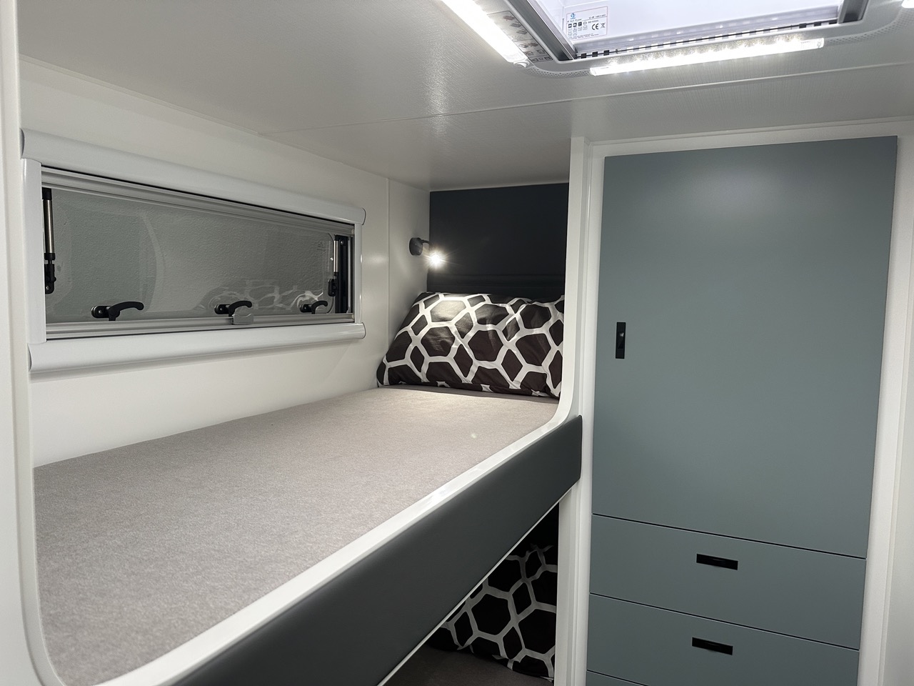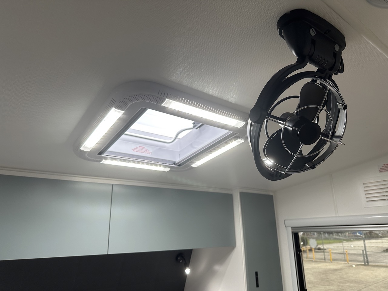 – 12v fan above island bed, 2 x 12v fans in bunks