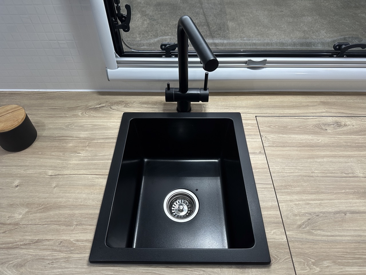 Sink with flick mixer & water filter