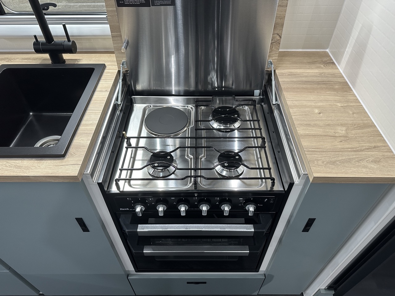 Hawk cooktop (3 gas, 1 electric) & griller (gas) with recessed bench top