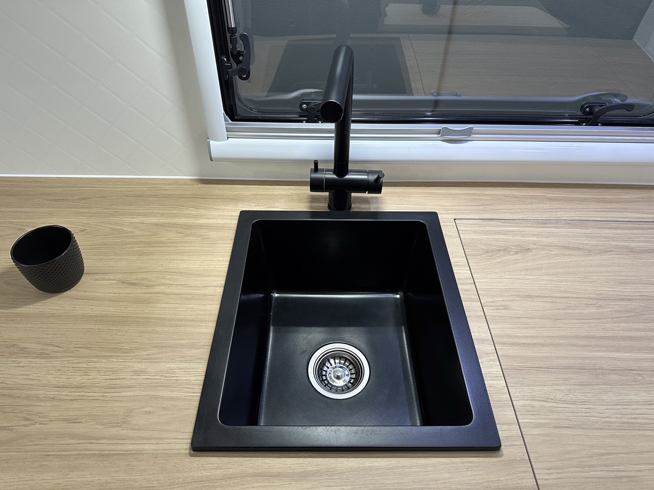 Sink with flick mixer & water filter