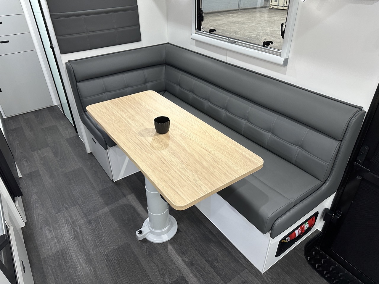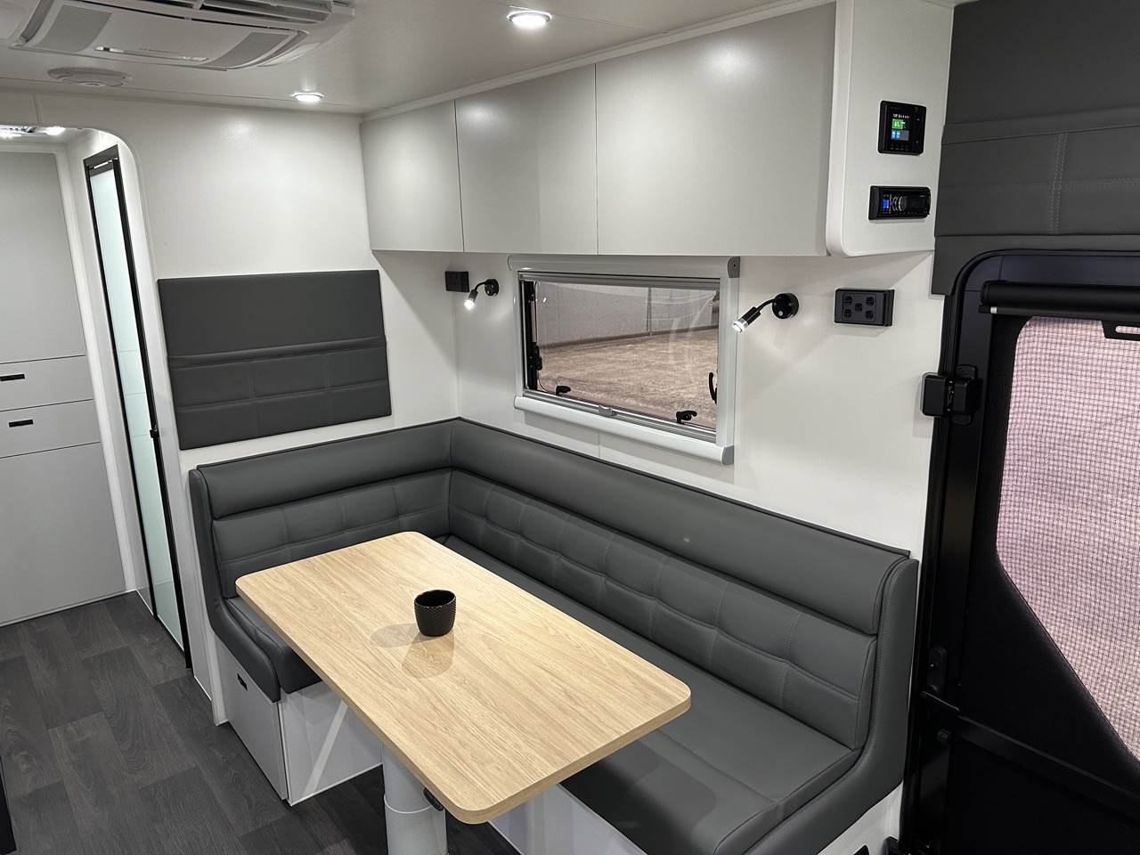 L-shaped dinette with map reading lights & magazine pouch