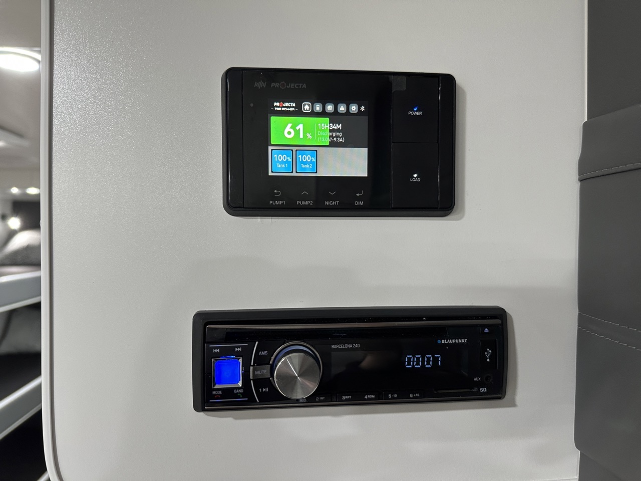 Projecta battery management system with display screen & water tank level indicators