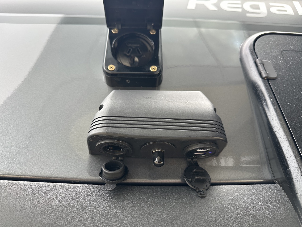 10amp outlet, 2x 12v socket, 2x USB ports & 2x antenna point