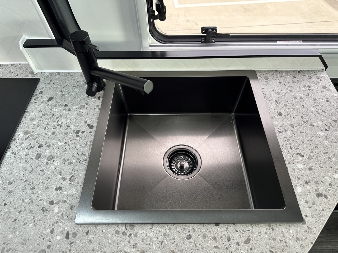 Black sink & flick mixer with built in water filter