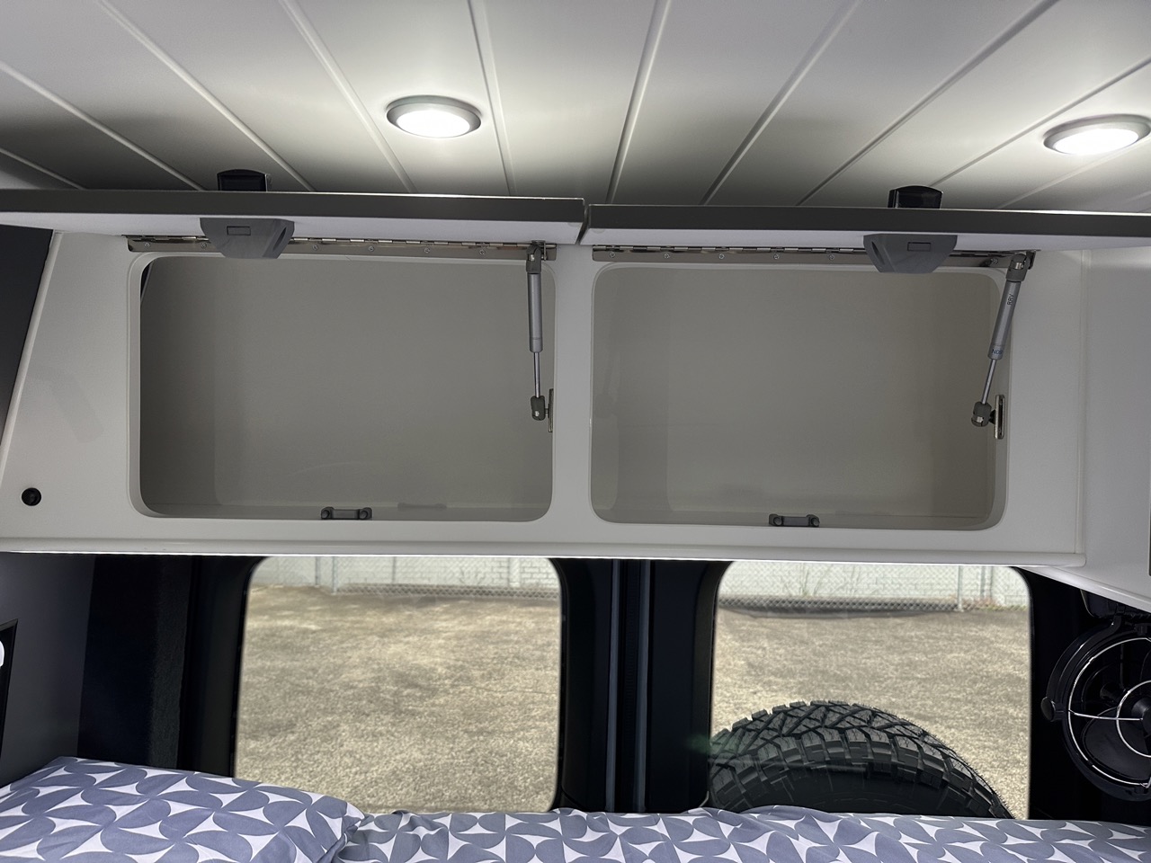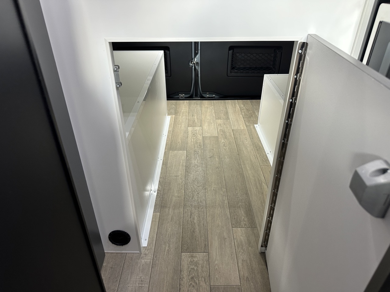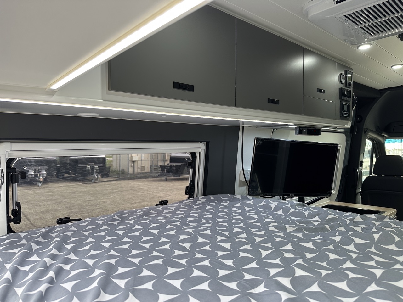 Rear east west bed with storage area below (Bed dimensions 1700mm L x 1350mm W)