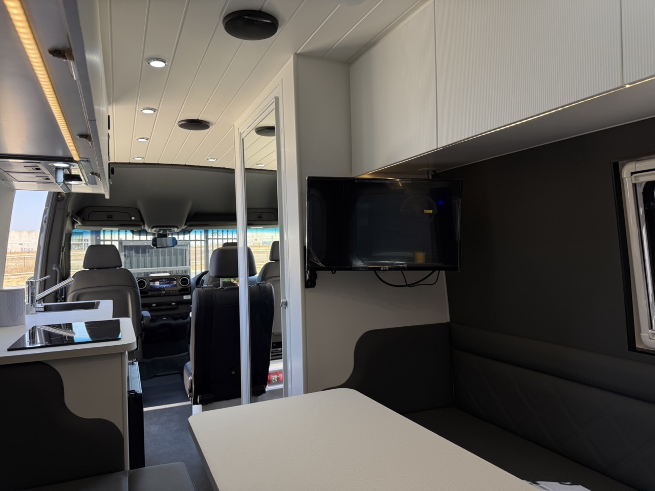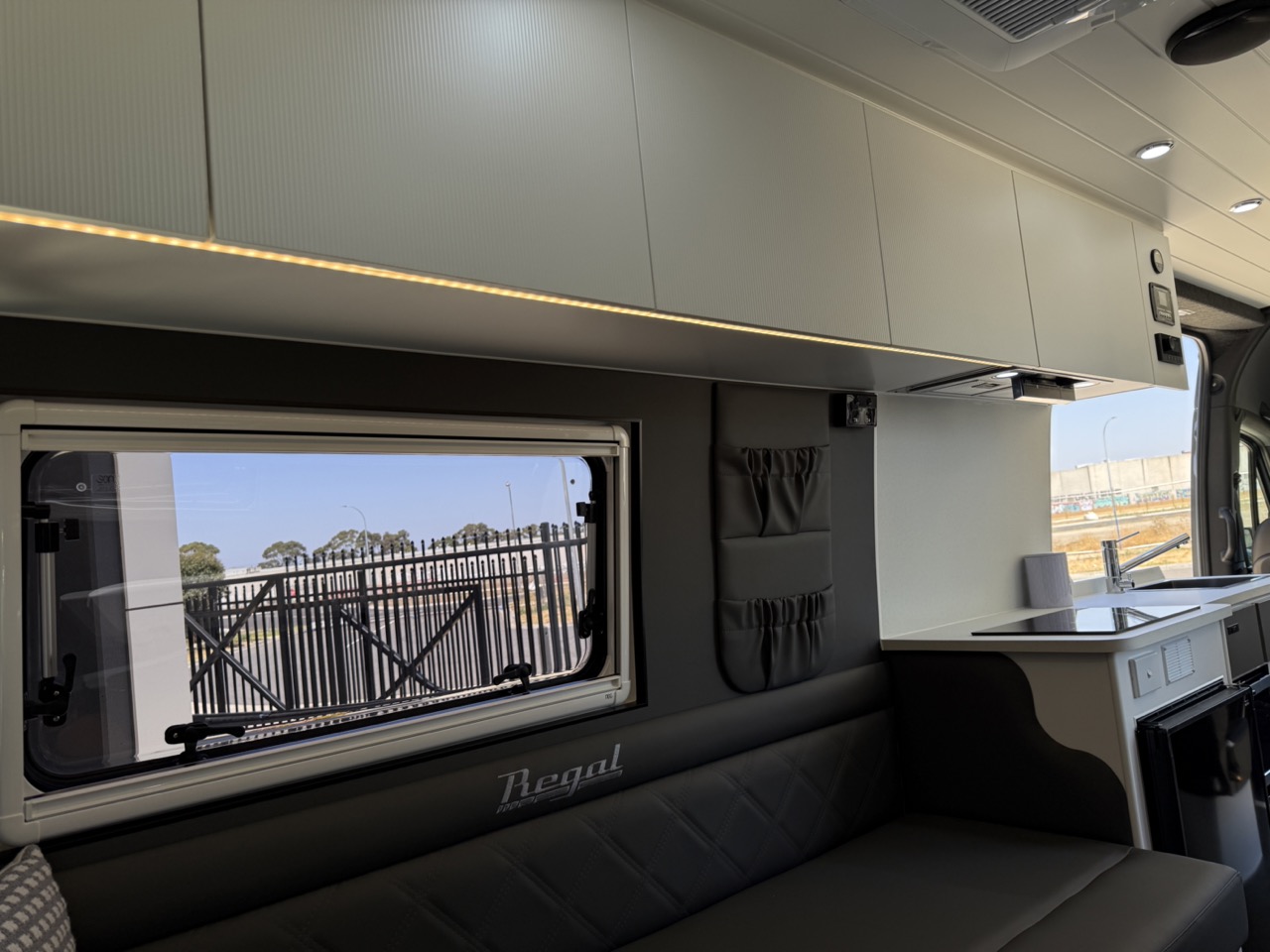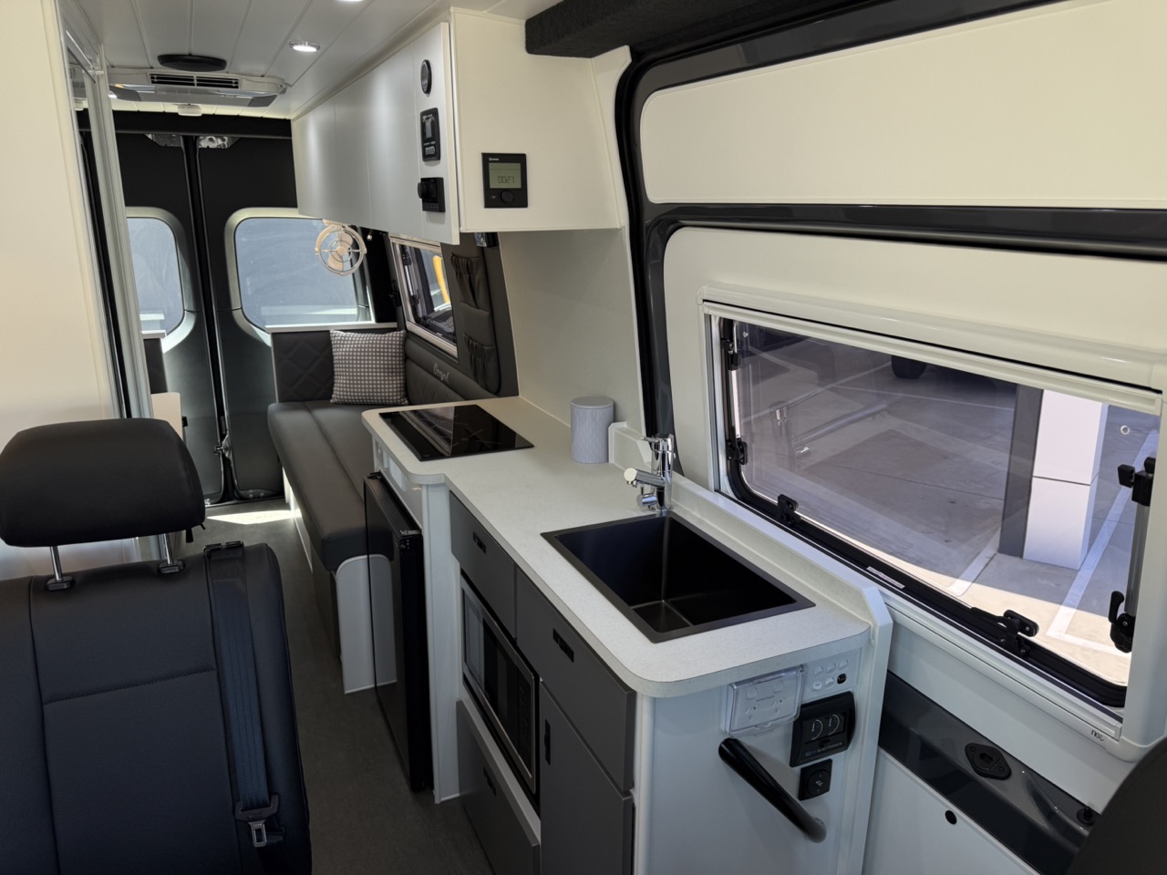 Large seating/sleeping area with map reading lights, USB/USBC Ports, LED strip lighting, double power points & 2 x Adjustable fans