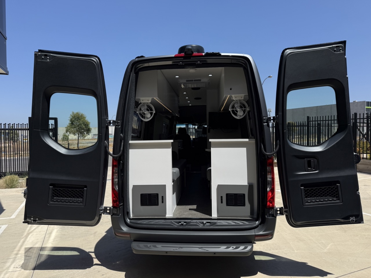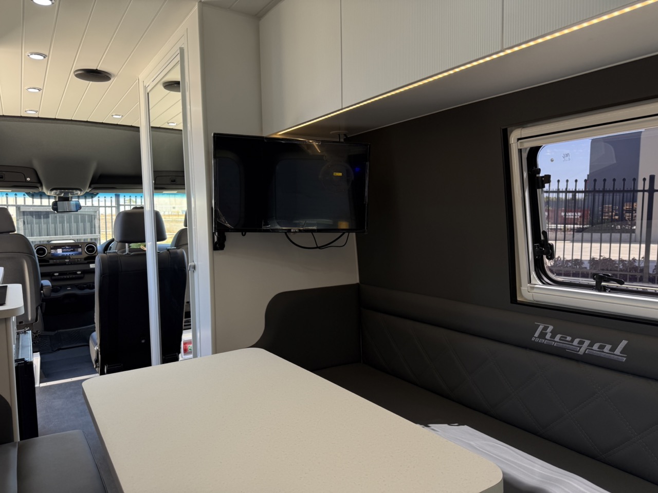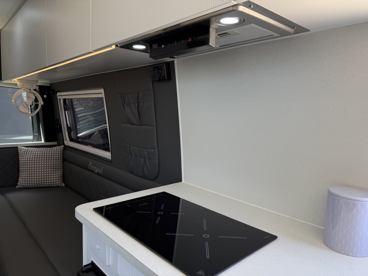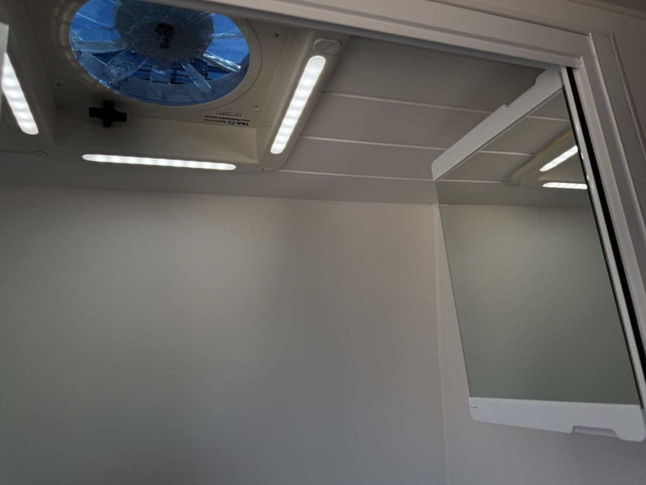 Large seating/sleeping area with map reading lights, USB/USBC Ports, LED strip lighting, double power points & 2 x Adjustable fans