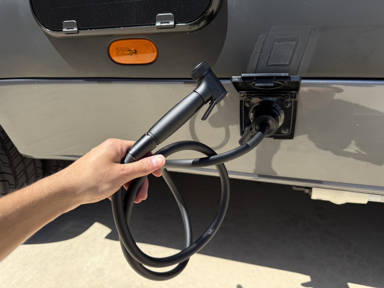 External grey Anderson plug for portable solar panel