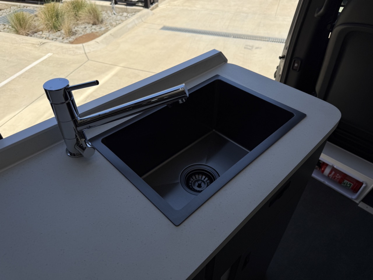 Black sink & flick mixer with built in water filter