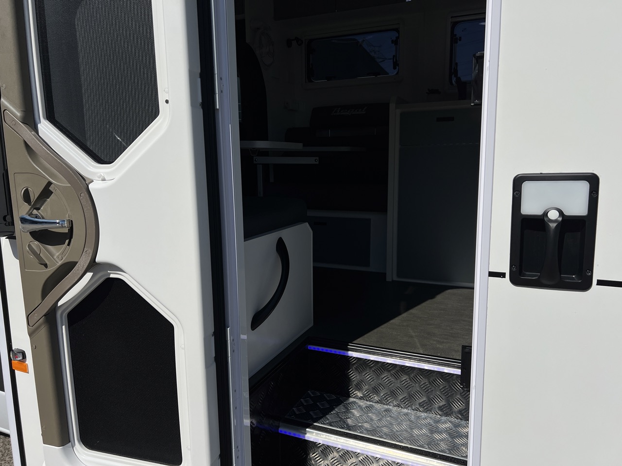 Double entry step with led strip lighting & LED grab handle