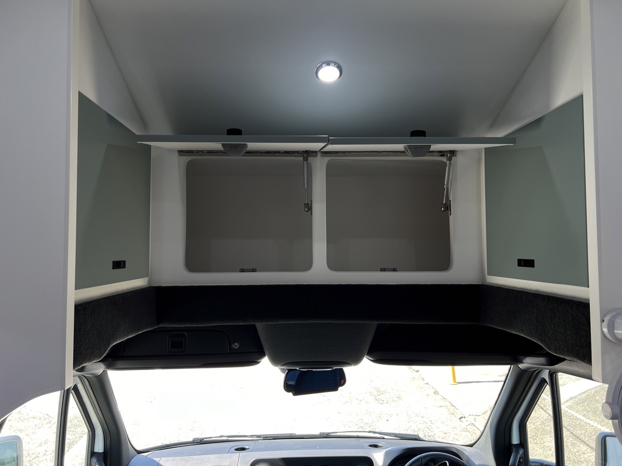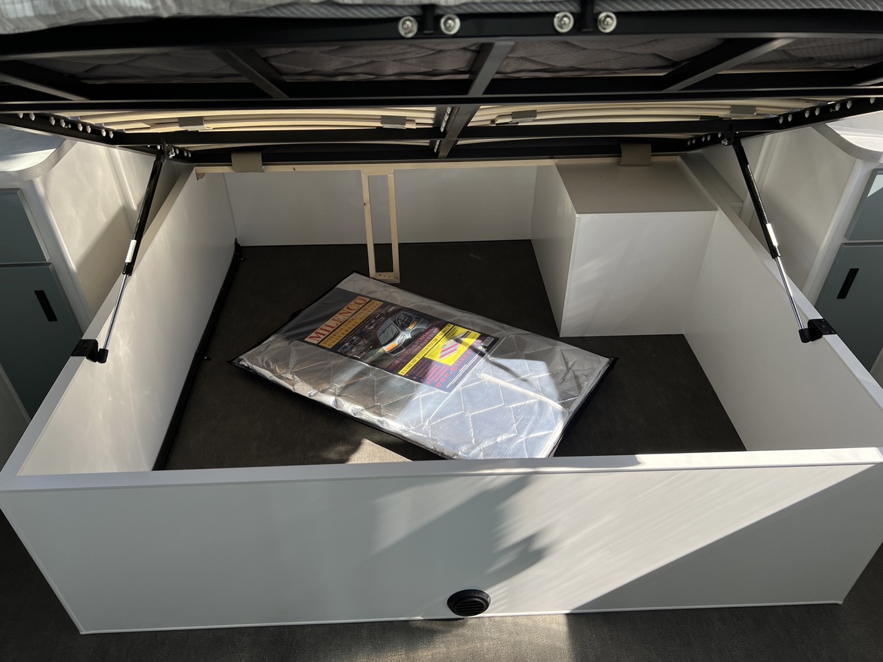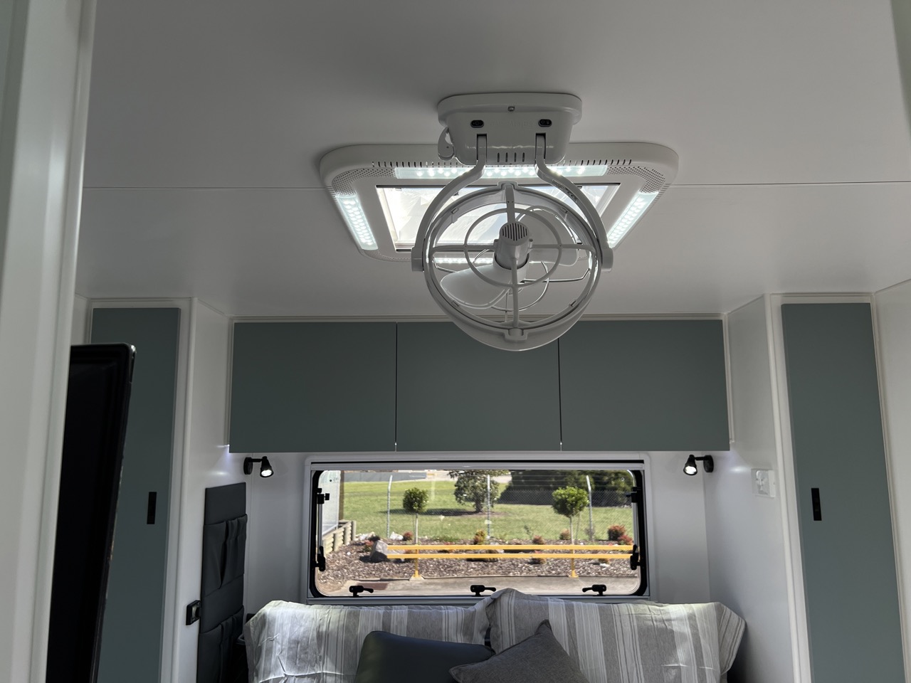 Push up hatch with built in LEDs above island bed