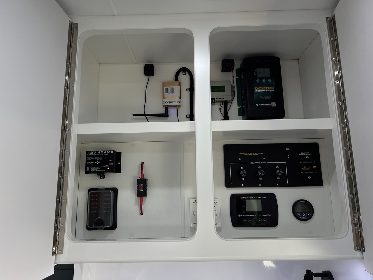 10amp outlet, 12v socket, USB ports & antenna point