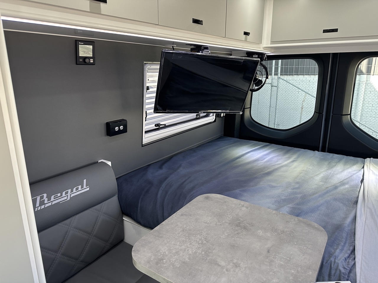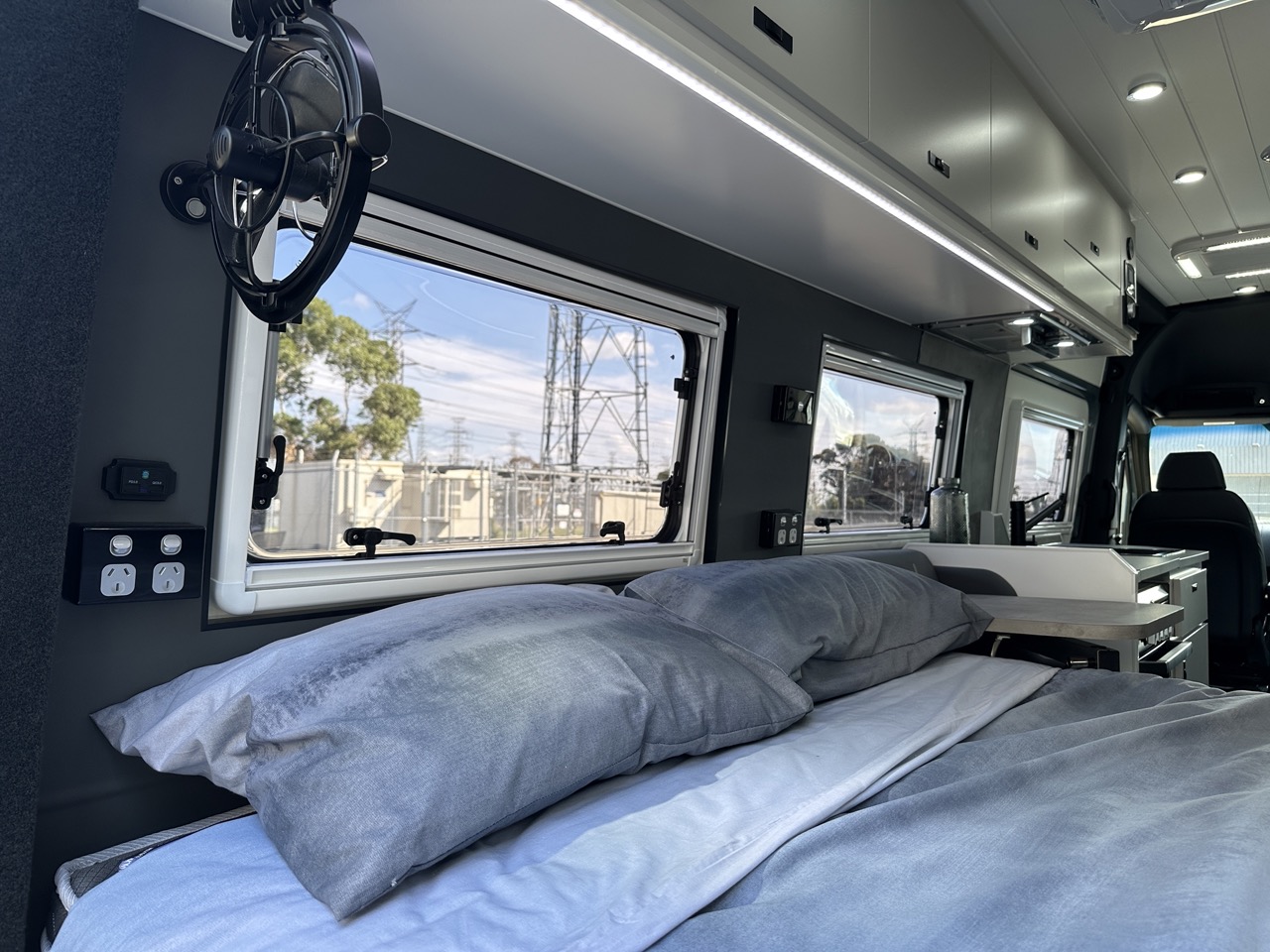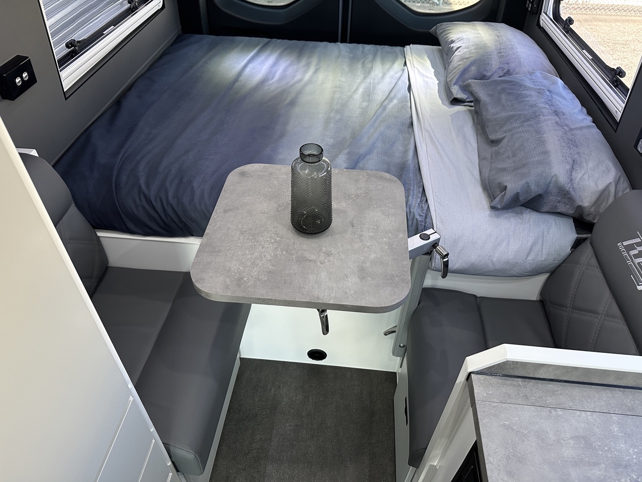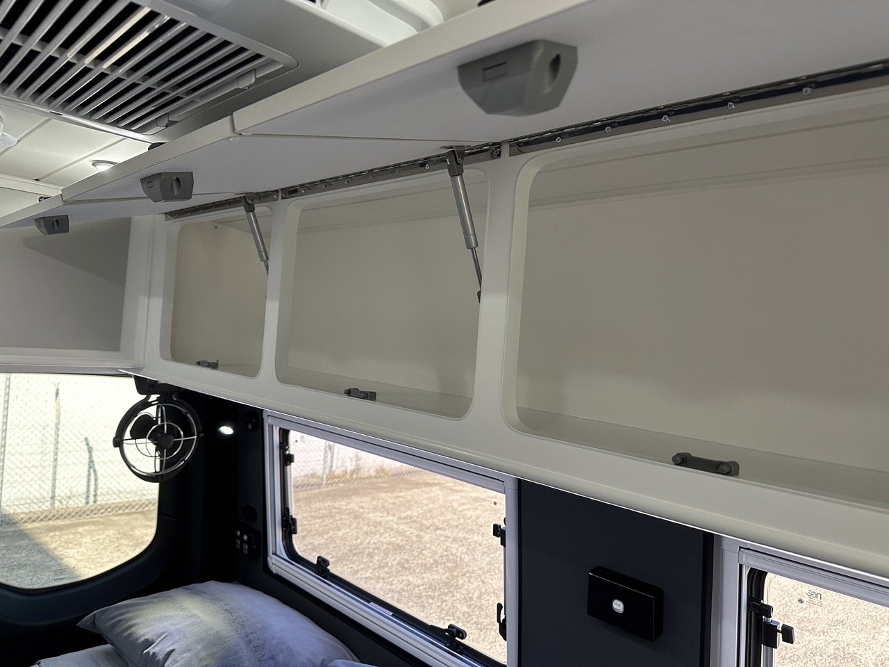Rear east west bed with storage area below (bed dimensions: 1740mm L x 1400mm W)