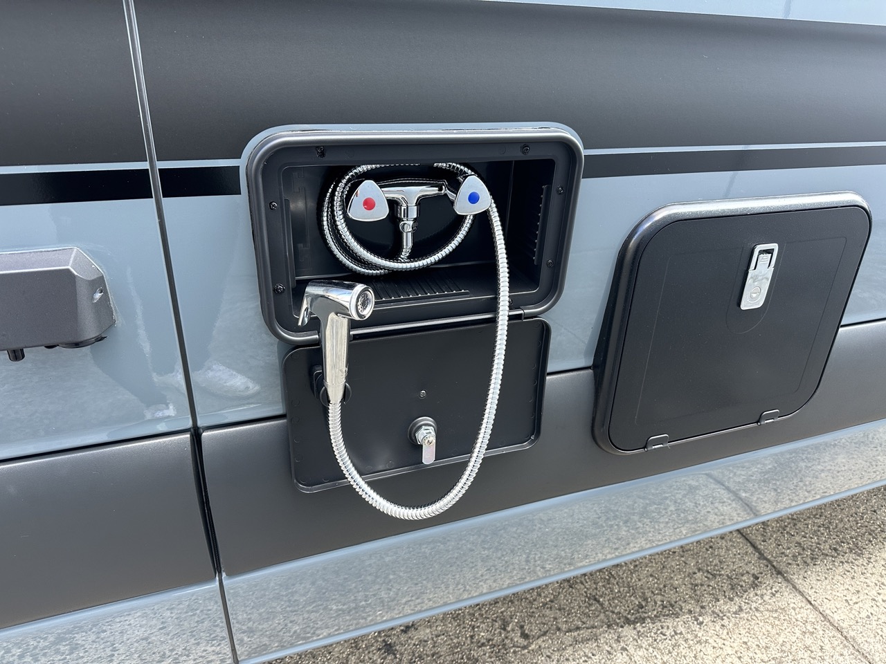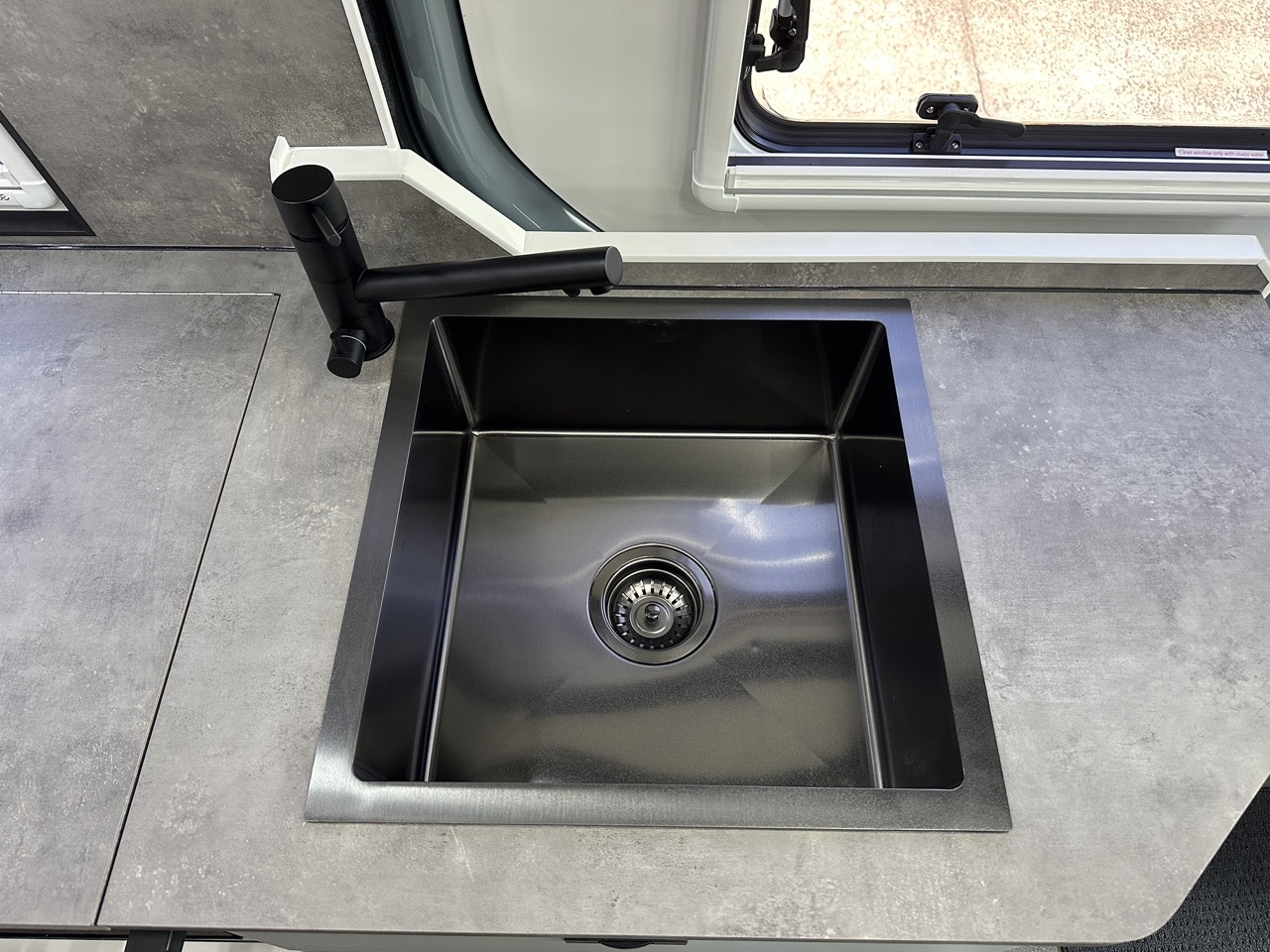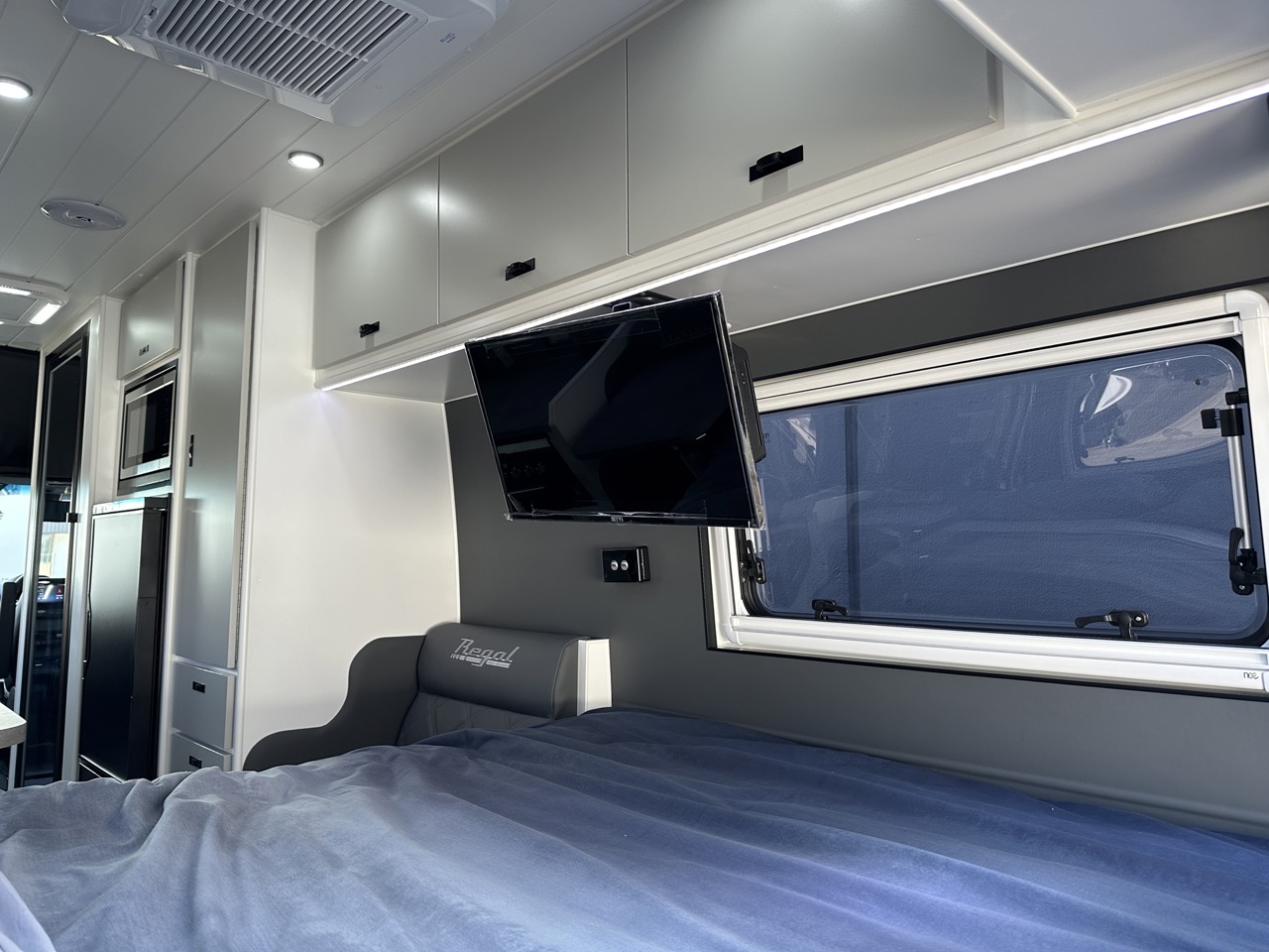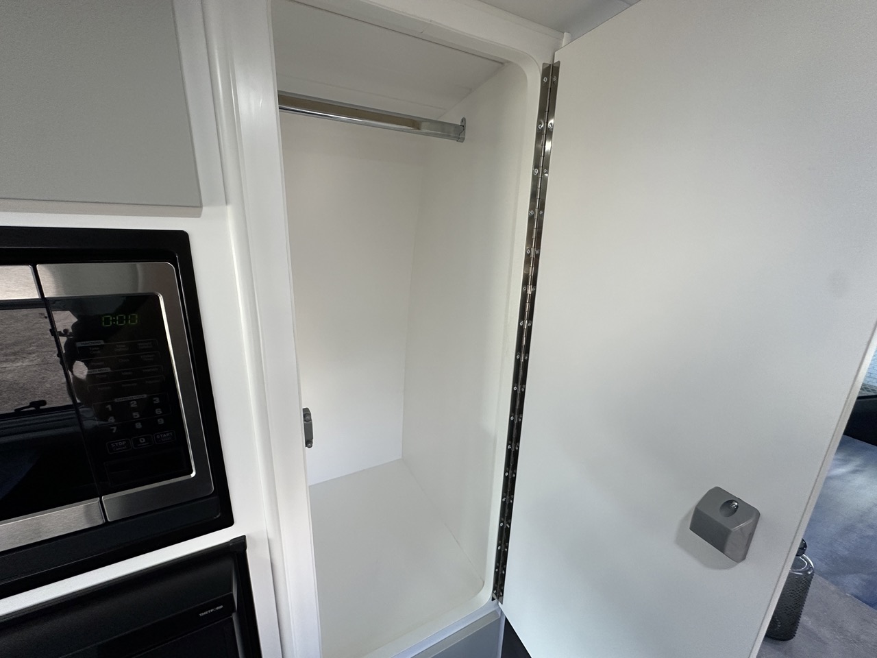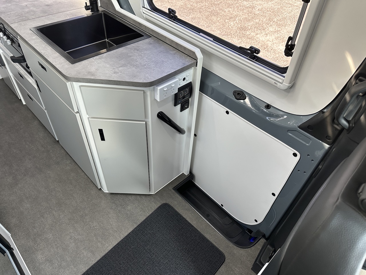 Rear east west bed with storage area below (bed dimensions: 1740mm L x 1400mm W)