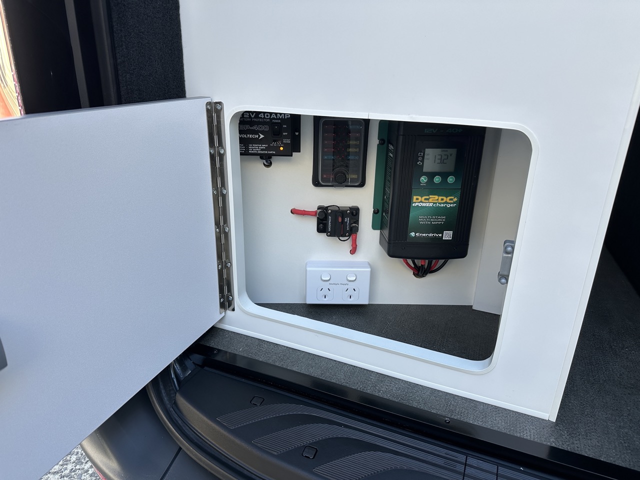 10amp outlet, 2x 12v socket, USB ports & 2x antenna point