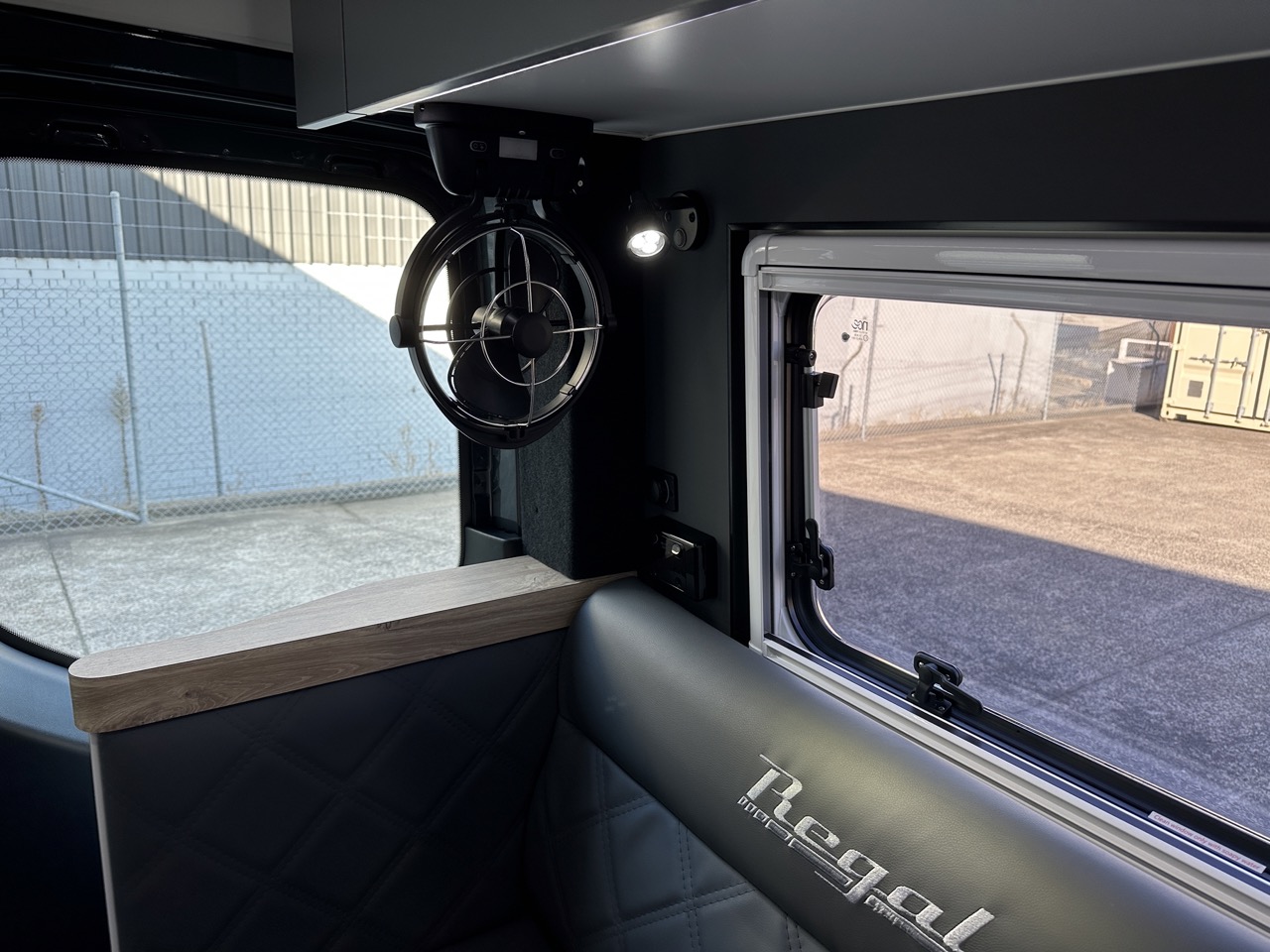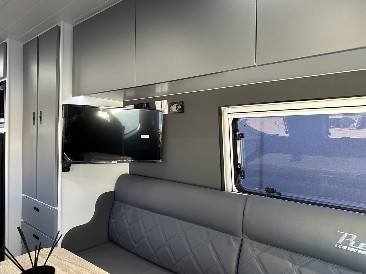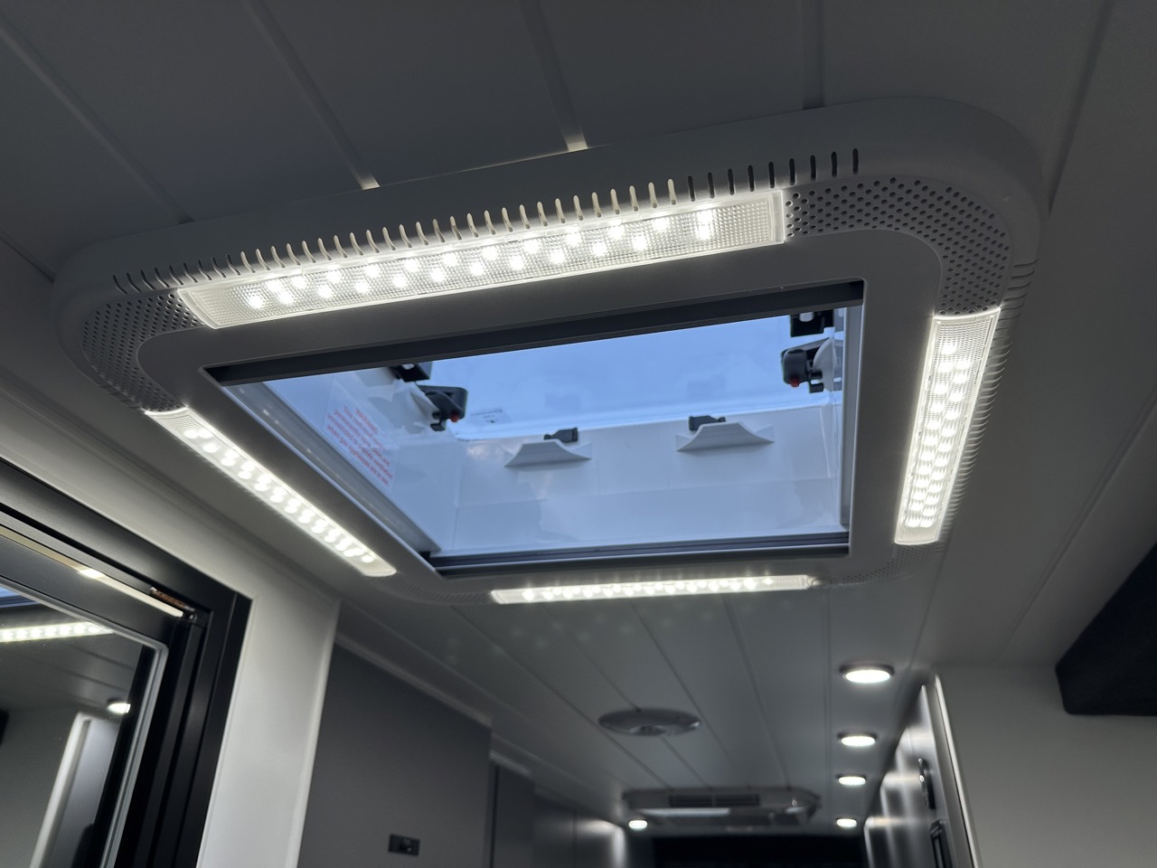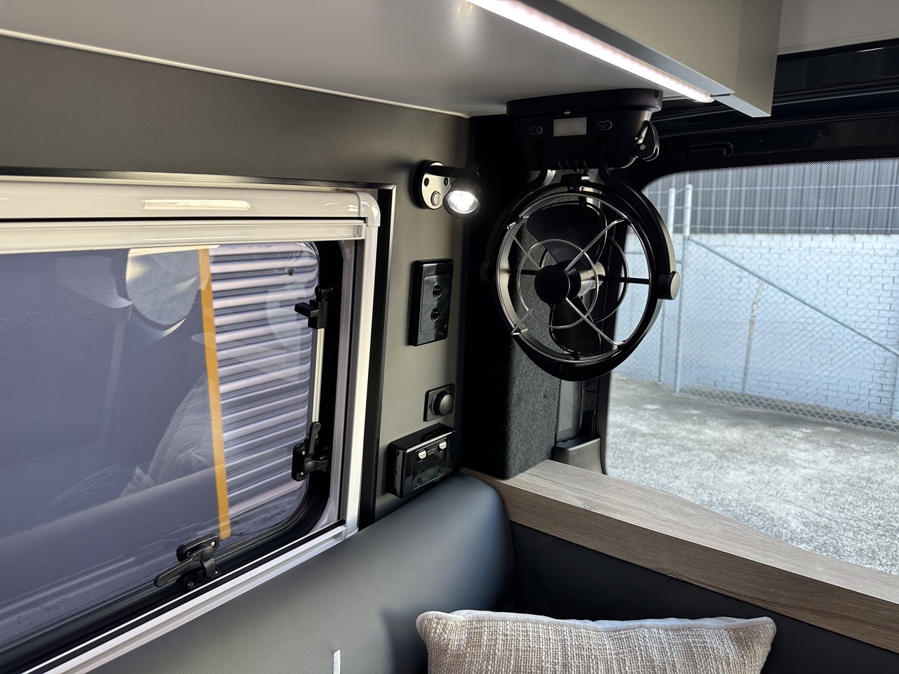Large seating area with map reading lights, USB/USBC Ports, LED strip lighting, double power points & privacy curtains