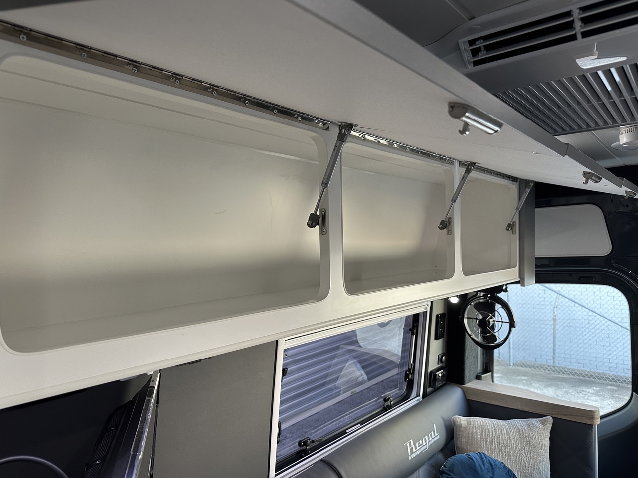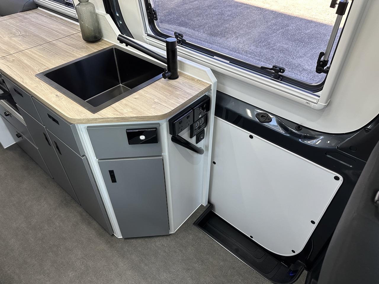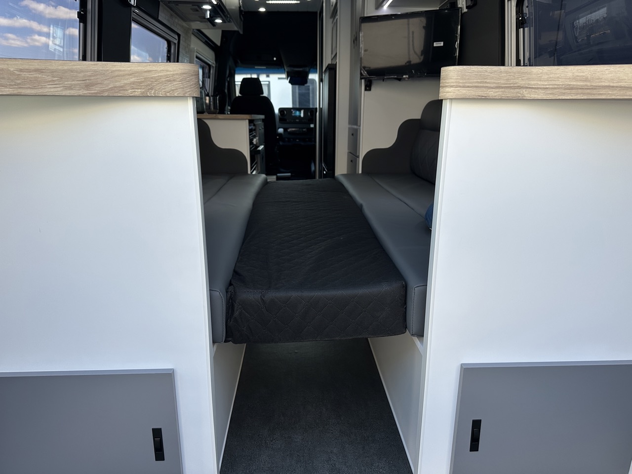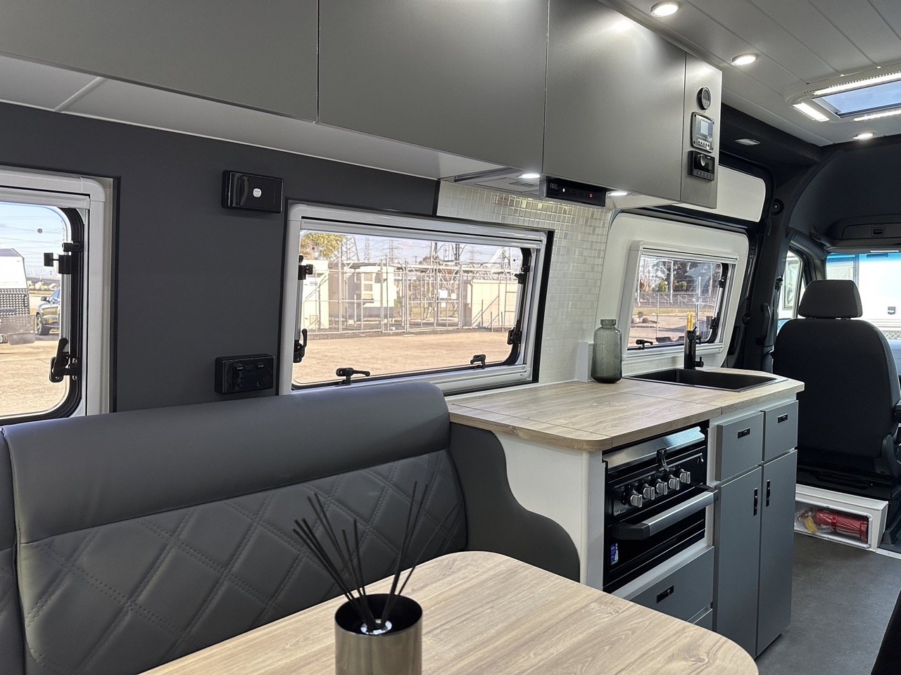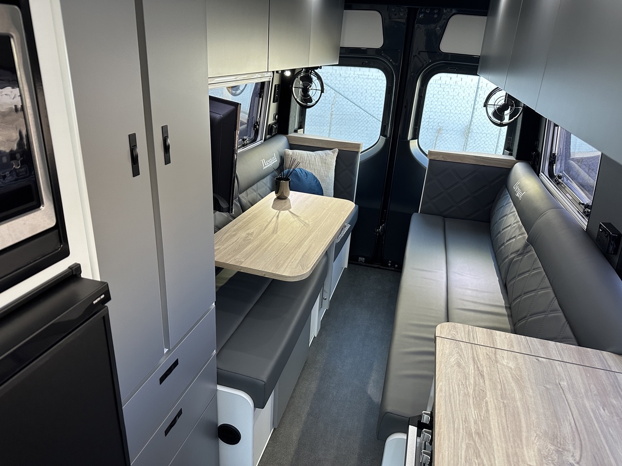 Large seating area with map reading lights, USB/USBC Ports, LED strip lighting, double power points & privacy curtains
