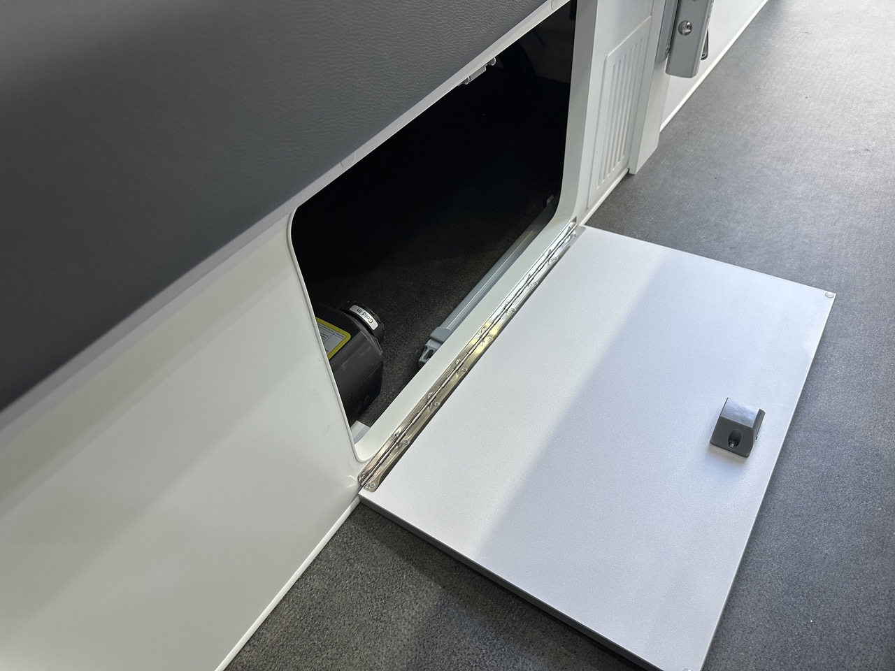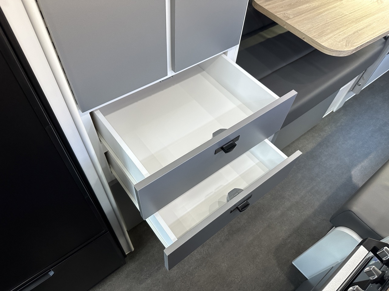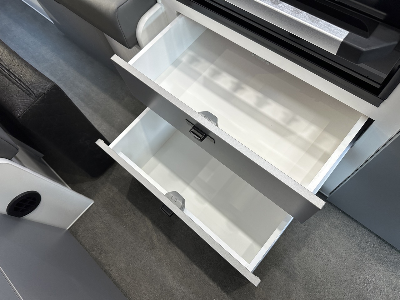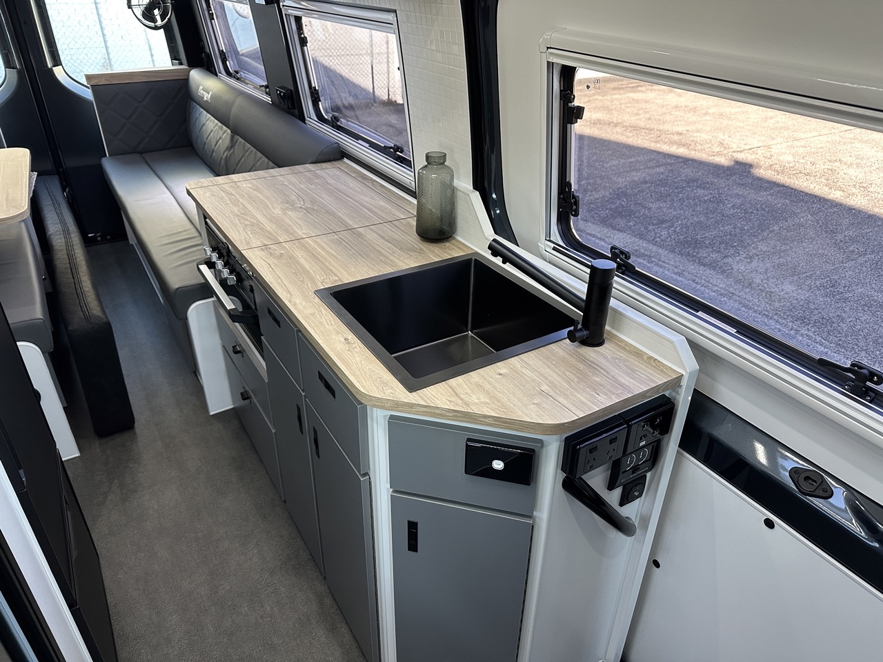 Large seating area with map reading lights, USB/USBC Ports, LED strip lighting, double power points & privacy curtains